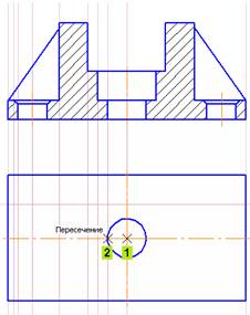 · С помощью привязки Пересечение укажите точку 2.