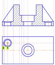 · Для построения центрального отверстия укажите точку 1 (привязка Ближайшая точка) центра окружности.