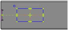 ü Постройте на грани произвольный прямоугольник ü Нажмите кнопку ОСЕВАЯ ЛИНИЯ ПО ДВУМ ТОЧКАМ ü С помощью привязки БЛИЖАЙШАЯ ТОЧКА постройте на прямоугольнике две осевые линии.