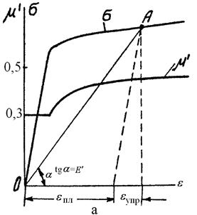 Так как коэффициент Пуассона за пределом упругости μ' изменяет-ся по мере роста пластической деформации от μ до 0,5 (рис.2.4), то с рос-том пластической деформации отношение