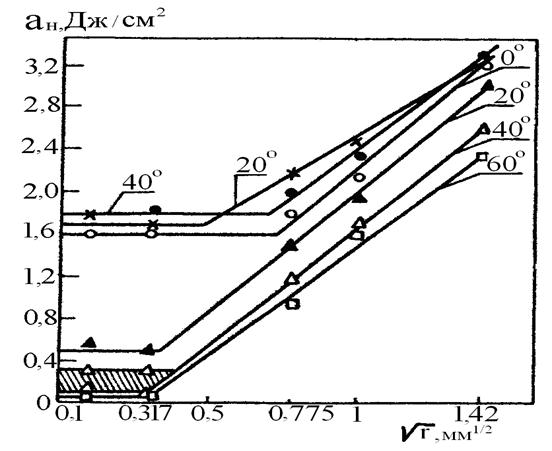 Метод В.С.Ивановой Строится график (рис.4.18) зависимости ударной вязкости не от ра-диуса надреза r, а от величины