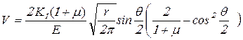 Коэффициент интенсивности напряжений возле вершины трещины при плоской деформации имеет вид К1