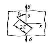 где х – координата, отсчитываемая от середины трещины, тогда r = х - Около вершины трещины, при х ниченно растут по модулю. Подставляя уравнение для σу (4.36) в урав-нение для вычисления К1 (4.35) и вычисляя, находим: