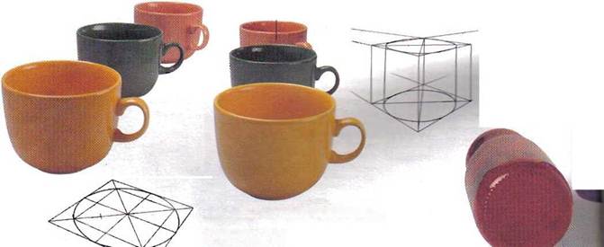 Конус и усеченный конус являются геометрическими формами, имеющими большое значение для начинающих художников, осваивающих методику изображения фигуры человека. Шар является простой правильной геометрической формой, которая позволяет художнику строить форму любого округлого предмета. Шар лежит с основе многих изображаемых предметов или а своем целом виде (яблоко, мяч и т. п.), или в виде какой-то части (чашка, головной убор и г. п.) ПЕРЕДАЧА ОБЪЕМНОСТИ ПРЕДМЕТОВ Фронтальная перспектива