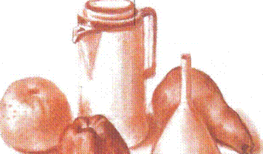 При выполнении натюрморта сангиной следует применить такой технический прием, как растушевка, который позволяет создать различные промежуточные валёры. Сангина обладает способностью см я (чать резкие контрасты на бумаге, особенно в затененных местах рисунка.
