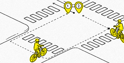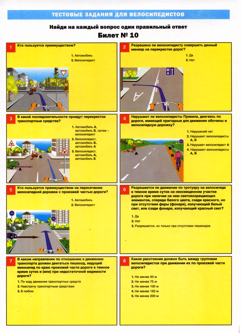 7Зебры Двигающийся по проезжей части велосипедист должен уступить дорогу пешеходам, переходящим дорогу по зебре. Как только велосипедист слезает с велосипеда, он превращается в пешехода. Только пешеходу можно пересекать дорогу по зебре.