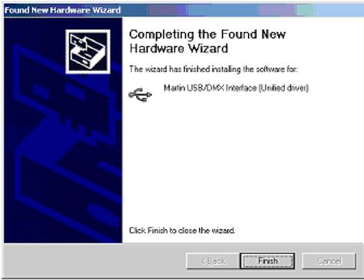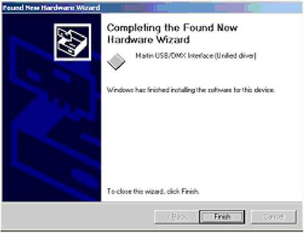 Нажмите кнопку «Готово» (Finish), а если требуют настройки дополнительные интерфейсы LightJockey USB/DMX, повторите шаги, начиная с пункта 2, пока не установите драйверы для каждого типа интерфейсов.
