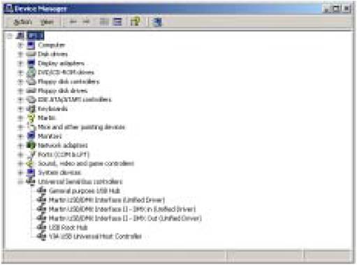 Убедитесь в том, что в категории Martin Devices появилось устройство Martin PCI4064: DMX PCI Card.