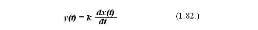 В данном случае k – передаточный коэффициент звена, размерность которого определяется отношением размерности выходного параметра к скорости изменения величины входного параметра. Передаточная функция идеального дифференцирующего звена может быть найдена с помощью преобразования по Лапласу и будет иметь вид: