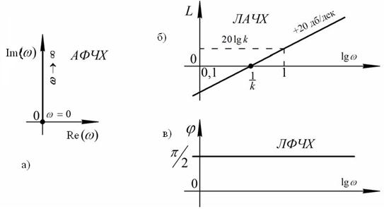 Графическое представление частотных характеристик идеального дифференцирующего звена изображено на рисунке 34.