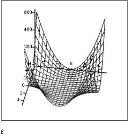 Построение трехмерных графиков. Для построения трехмерного графика необходимо: 1. Набрать имя функции двух переменных, знак присвоения значения:=, выражение функции. 2. Необходимо установить курсор в то место где будет расположен график. 3. В математической панели нажать на кнопку Graph Toolbar(Панель графиков) и выбрать Surface Plot(трехмерный график). 4. На месте курсора появиться шаблон графика. 5. В единственном поле ввода шаблона графика введите имя функции (без параметров). 6. Щелкните мышью вне области шаблона. График построен (рис.5)