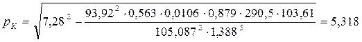 3.2. Принимаем в качестве первого приближения значения λ, ТСР и ZСР из первого этапа вычислений: λ = 0,0106; ТСР = 290,5 К; ZСР = 0,879. 3.3. Определяем по формуле (35) значение РК в первом приближении