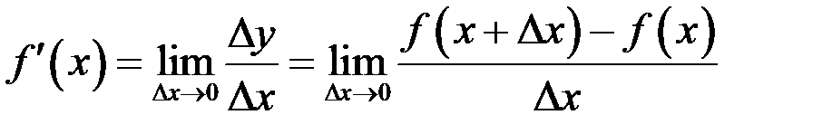 Определение . Производной функции в данной точке х называется предел отношения приращения функции к приращению аргумента, при , если он существует.