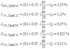 ΔUmax10 = 0,35·10 /100 = 0,035 В ΔUmax20 = 0,2·20 /100 = 0,04 В ΔUmax30 = 0,15·30 /100 = 0,045 В ΔUmax40 = 0,125·40 /100 = 0,05 В ΔUmax50 = 0,11·50 /100 = 0,055 В
