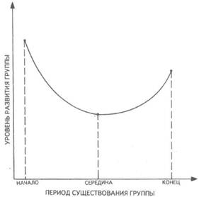 Рис. 70. Гипотетическая кривая развития группы (ее психологического состояния) (по А.Г.Кирпичнику)