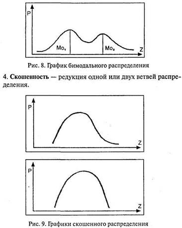 Эксцесс – четвертый основной показатель распределения. 3. Бимодальность – распределение с двумя классами данных в выборке. Об этом эффекте уже говорилось при рассмотрении моды (Мо). На графике это выражается «двувершинностью».
