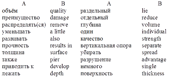 Упражнение 2. Найдите перевод слов списка А в списке В.