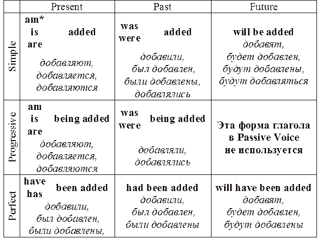 ВРЕМЕНА ГЛАГОЛА В СТРАДАТЕЛЬНОМ ЗАЛОГЕ (PASSIVE VOICE)