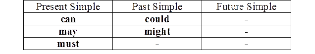 6.3 Модальные глаголы (Modal verbs) Модальные глаголы в русском и английском языках обозначают не действие, а отношение к нему говорящего и выражают способность, возможность, допустимость, необходимость действия. Само действие выражается смысловым глаголом в форме инфинитива (неопределённо-личной форме), который следует после модальных глаголов: We must use strong materials. Мы должны использовать прочные материалы. Модальные глаголы являются недостаточными, потому что количество их форм ограничено. Так глаголы can. may, must не используются во временах Progressive и Perfect, а во временах Simple имеют лишь часть форм.