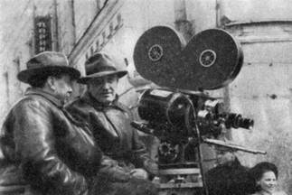 Чтобы более рационально организовать работу на съемочной площадке, оператор присутствует на репетициях. Если предварительные репетиции служат для поисков необхо димой изобразительной формы, то окончательный же рисунок кадра режиссер и оператор находят на съемке. В процессе подготовительных репетиций режиссер и актеры намечают формы решения сцены, формы движения, жеста и мимики. На съемочной площадке, перед камерой, режиссер и актер находят пластическое исполнение сцены для каждого монтажного кадра. Ограничить действия актера только живо писными задачами и навязать ему форму движения и жеста — значит сковать актера в его непосредственном чувстве, заменить внутреннюю оправданность заданной внешней формой. «Внешнее должно быть оправдано изнутри, и только тогда оно захватывает смотрящего», — говорит Станиславский1. Навязывание актеру формы движения и жеста, мотивирован ное только «живописными» соображениями, противоречит реали стическому искусству изображения действия актера в образе. В книге «Основы кинорежиссуры» проф. Л. Кулешов пишет: «Некоторые режиссеры стали применять в режиссерских сце нариях зарисовку кадров. ... З а р и с о в к а кадров — не альбом художественных карти нок, а рабочая запись — план композиции, сделанный режиссером и оператором. На практике кадры зарисовываются или самим режиссером совместно с оператором, если режиссер умеет рисо вать, или художником совместно с режиссером и оператором»2. Некоторые режиссеры и сейчас пользуются специальными эскизами-зарисовками, привлекая для их выполнения худож ников-живописцев. Такой метод работы применил, например, режиссер Г. Рошаль при постановке фильма «Мусоргский». «П о нашим, — пишет Г. Рошаль, — указаниям художница Б. Маневич-Каплан раз работала цветовую партитуру картины. Эта партитура связывала воедино все наши замыслы по линии декораций, костюмов, по строения кадров, изменения колорита и т. д. Она представляла собой, примерно, сто тридцать больших, написанных гуашью эскизов, дополнявших эскизы декораций Н. Суворова и костю мов Словцовой»3. И дальше: «Надо прямо сказать, эти схемы 1 К. С. С т а н и с л а в с к и й, Моя жизнь в искусстве, стр. 710. 2 Л. В. К у л е ш о в, Основы кинорежиссуры, М., Госкиноиздат, 1941, стр. 114— 11G. 3 Г. Л. Р о ш а л ь, Из опыта работы над биографическим филь мом. — Сб. «Вопросы мастерства в советском киноискусстве», М., Госки ноиздат, 1952, стр. 218. нам чрезвычайно помогли разобраться в цветовом построении нашего фильма. Конечно, мы в картине не придерживались неукоснительно предварительной цветовой партитуры. Живое «письмо» операторов и художников сплошь и рядом нарушало наши предопределения»1. Таким образом, признавая, что эти предварительные эскизы- зарисовки оказали большую пользу, Г. Рошаль подчеркивает, что «художественная полноценность фильма достигается только в съемочном процессе»2. КИНОПОРТРЕТ Д л я выразительности экранного образа исключительно боль шую роль играет изобразительное решение крупных планов актера. Это подтверждается работами советских кинооператоров А. Москвина, Б. Волчека, С. Урусевского, Л. Косматова и других. В своих фильмах они создали замечательные портретные крупно плановые композиции, во многом способствовавшие глубине и убедительности раскрытия таких образов, как образ большевика Максима в исполнении Б. Чи