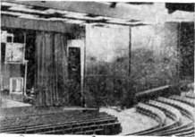 ¶ческие и оптические качества различных форм сцены. Все варианты сценических площадок получают в результате трансформации законченный вид и полноценное оборудование. Особенно ярко эти качества проявились в драматическом театре города Тулы (1970). Авторы проекта архитекторы С. Галад-жева, В. Красильников, А. Попов, В. Шульрихтер. Главными особенностями этого театра является сохранение постоянной удаленности зрителей от сцены при любых трансформациях, увеличение видимости зрительного зала без уменьшения площадей зрительского комплекса. Основная трансформация происходит за счет присоединения сценических карманов к зрительному залу (рис. 203, 204, 205). Боковые части портальной стены зала заменены подвижными панелями, убирающимися в хранилища, расположенные в верхней части основного амфитеатра. В карманах находятся выдвижные трибуны с сиденьями. В рабочем положении трибуны продолжают ряды стационарного амфитеатра. Присоединение этих дополнительных мест при сохранении кресел в партере увеличивает вместимость зрительного зала с 895 до 1341 места. В этом положении преимущественно обыгрываются только авансцена и первые планы основного планшета, поскольку задние планы плохо просматриваются с боковых мест. Но и этот участок не