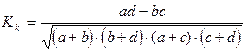 Коэффициенты вычисляются по формулам: ассоциации: контингенции: