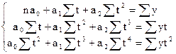 для параболы второго порядка (yt=a0+a1t+a2t2):