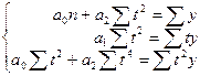 Системы для расчета параметров полиномов невысоких степеней намного проще. Обозначим последовательные параметры полиномов как а0, а1, а2. Тогда системы нормальных уравнений для оценивания параметров прямой