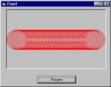 Private Sub Command1_Click() Dim x As Integer Picture1.Cls x = 500 y = 2500 Do Until x > 4450 Picture1.Circle (x, y),500,RGB(255,0,0) x = x + 50 y = y – 25 ’х умножить на Ö2/2 For i = 1 To 100000 Next Loop End Sub