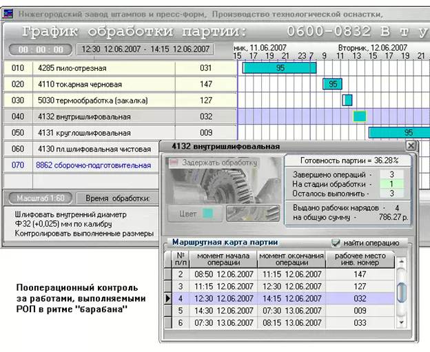 Рис.11. Пример диспетчерского контроля прохождения заказов в РОП в методе DBR.