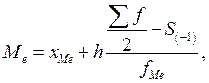 Моду і медіану із інтервальних рядів визначають розрахунковим шляхом за наступними формулами:
