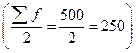Цей показник означає, що найбільше працівників було із заробітною платою 1954,3 грн. Щоб визначити медіану інтервального варіаційного ряду спочатку, за допомогою нагромаджених частот, потрібно знайти інтервал, що містить медіану. Медіанному інтервалу відповідає перша з нагромаджених частот, яка перевищує півсуму частот усього обсягу сукупності