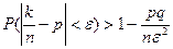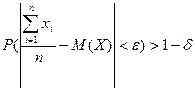 где e,d - произвольные малые положительные числа. Теорема Чебышева утверждает, что малое (меньше, чем e) отклонение среднего арифметического от математического ожидания весьма вероятно. Иными словами, почти всегда будет наблюдаться малое отклонение (при большем числе испытаний n).