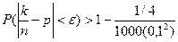 Пусть n=1000 р=q=1/2, e=0,1, тогда