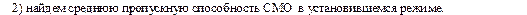 где l — интенсивность потока заявок, m — интенсивность потока обслуживания. Формулы (17) справедливы только в том случае, когда входящий поток заявок и поток обслуживания стационарны. (Первая и вторая формулы называются формулами Литтла.) Рассмотрим частные случаи: 1. Многоканальная система массового обслуживания с отказами (задача Эрланга). Пусть m = 0, т.е. очередь не допускается, если все каналы обслуживания заняты, то заявка покидает СМО. Из формул (20), (21) получим: p0 = p1 = Формулы (22) называются формулами Эрланга. А = l(1 – pk); Q = 1 – pk; Pотк = pk; Задача 4. Диспетчерская служба имеет 5 линий связи. Поток вызовов простейший с интенсивностью l=0,8 вызовов в минуту. Среднее время переговоров с диспетчером составляет t = 3 мин. Время переговоров распределено по показательному закону. Найти 1) абсолютную и относительную пропускные способности диспетчерской службы; 2) вероятность отказа; 3) среднее число занятых каналов. Определить, сколько линий связи должна иметь диспетчерская служба, чтобы вероятность отказа не превышала a = 0,01? Решение. Находим интенсивность потока обслуживания m = 1/ M[Tобсл] = 1/3 разговора в минуту. Коэффициент загрузки СМО составляет r = p0= p5 = Находим по формулам (23): а) абсолютная пропускная способность: А = l(1—р5) (следовательно, СМО обслуживает в среднем 0,75 заявки в минуту);