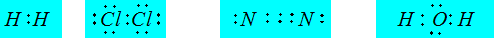 Лишь немногие химические элементы (благородные газы) при обычных условиях находятся в состоянии одноатомного газа. Атомы остальных элементов могут взаимодействовать друг с другом и с атомами других элементов. образуя при этом более или менее сложные частицы (молекулы, молекулярные ионы и свободные радикалы), что указывает на наличие причины, по которой атомы связываются друг с другом. Эта причина получила название химической связи. Химическая связь – это результат взаимодействия электрических полей, создаваемых электронами и ядрами атомов, участвующих в образовании устойчивой химической системы – молекулы. Доказано, что в образовании химической связи между атомами главную роль играют валентные электроны, расположенные на внешней оболочке атома и, следовательно, связанные с ядром наименее прочно. Именно поэтому строение валентной электронной конфигурации атомов является определяющим фактором при рассмотрении условий образования химической связи. Согласно теории химической связи, наибольшей устойчивостью обладают внешние оболочки из двух или восьми электронов (характерные для благородных газов). Это и служит причиной того, что благородные газы при обычных условиях не вступают в химические реакции с другими элементами. Атомы же, имеющие на внешней оболочке менее восьми электронов (или иногда менее двух), стремятся приобрести структуру благородных газов. Такая закономерность позволила сформулировать положение, которое является основным принципом образования молекулы: при образовании молекулы, атомы стремятся приобрести устойчивую восьмиэлектронную (октет) или двухэлектронную (дублет) оболочки. Образование устойчивой электронной конфигурации может происходить несколькими способами и приводит к молекулам (и веществам) различного строения, поэтому различают несколько типов химической связи. Химическая связь, обусловленная взаимодействием двух электронов по одному от каждого атома с образованием общей электронной пары, называется ковалентной связью. Для ее представления используют электронные формулы, в которых ковалентная связь изображается с помощью точек, обозначающих внешние электроны атома, например: