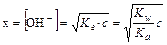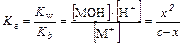 H2O ⇄ H+ + OH- Kw M+ + OH- ⇄ MOH 1/Kb ____________________________ M+ + H2O ⇄ MOH + H + Kг=Kw/Kb C0 c [ ] c-x x x