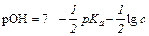 Приведенные формулы показывают, что для данного типа гидролиза константа гидролиза истепень гидролиза не зависят от концентрации соли в растворе, а рН определяется соотношением сильной кислоты и основания, которые образуют данную соль.
