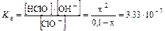 Пример 1. Вычислите рН и степень гидролиза соли NaClO (С=0,1 моль/л) pKa= 7,53. Решение: NaClO → Na+ + ClO- H2O ⇄ H+ + OH - Kw ClO- + H+ ⇄ HClO 1 /Ka= 7, 53.10-8 ______________________________________ ClO- + H2O ⇄ HClO + OH- Kг=Kw/Ka= 3, 33.10-7 C0 0,1 [ ] 0,1-x x x