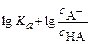Концентрация [А-] в буферном растворе будет определяться концентрацией соли, т.е. [А-] = C А- - так как в буферном растворе слабая кислота образует небольшое количество [А-]. Поскольку диссоциация слабой кислоты незначительна и к тому же подавляется присутствием одноименных ионов соли, можно допустить, что концентрация недиссоциированных молекул равна общей концентрации кислоты[HA]= C HА. Подставляя эти обозначения в уравнение для константы диссоциации, получим: