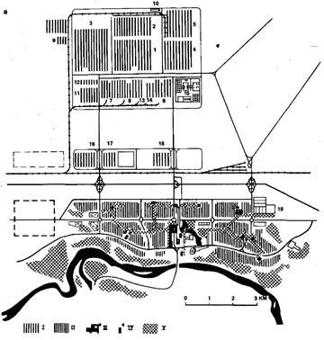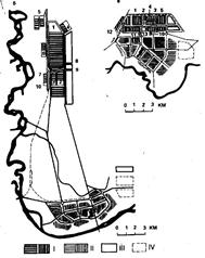 Рис. 28. Схема функционально-планировочной организации городов различного народнохозяйственного профиля. Планировка города на базе нефтехимического комплекса.