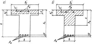 б) если граница сжатой зоны проходит в ребре (черт. 5, б), т.е. условие (27) не соблюдается, расчет производится из условия