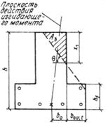 (где bov — ширина наименее сжатого свеса полки), расчет производится без учета косого изгиба, т. е. по формулам пп. 3.15 и 3.20, на действие момента М = Мx, при этом следует проверить условие (41), принимая x 1, как при косом изгибе. При определении значения Ab по формуле (37) напряжение в растянутом стержне, ближайшем к границе сжатой зоны, не должно быть менее Rs,что обеспечивается соблюдением условия