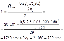 Определим максимальную длину ls приопорного участка, за которым выполняется условие (72), с умножением правой части на 0,8 и при с = c 1£0,8 cmax = 2 h 0, т. е. из решения уравнения