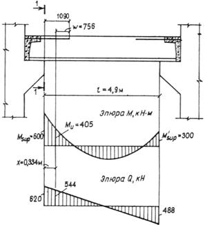 Поскольку ls = 1760 мм > c = 821 мм, оставим с = 821мм. Момент внешних сил относительно оси, расположенной посредине высоты сжатой зоны наклонного сечения, в данном случае равен изгибающему моменту в нормальном сечении, проходящем через указанную ось, т. е. на расстоянии l 1 + с = lsup /3 + с = 280/3 + 821 = 914 мм от точки приложения опорной реакции: