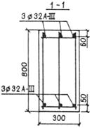 Поскольку lx < lan, расчетное сопротивление растянутой арматуры снижаем путем умножения его на коэффициент Поскольку к растянутым стержням в пределах длины lx приварены четыре вертикальных и два горизонтальных поперечных стержня (см. черт. 30), увеличим усилие RsAs = 124,1 · 982 = 121,9 · 103 H на величину Nw. Принимая dw = 6 мм, nw = 6, jw = 200 (см. табл. 22), получим