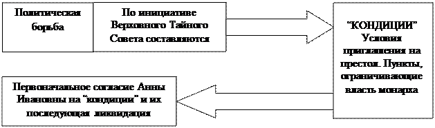 § Создание Верховного Тайного совета (18 февраля 1726 г.) как совещательного органа при монархе. В состав совета входили: А.Д. Меншиков, Ф.М. Апраксин, Г.И. Головкин, П.А. Толстой, М.М. Голицын, А.И. Остерман, герцог Голштинский
