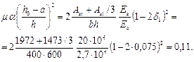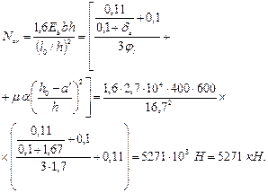 Из черт. 46 имеем a 1 = 45 мм, тогда Так как l 0/ h = 10/0,6 = 16,7 > 10, расчет производим с учетом прогиба элемента согласно п. 3.54, вычисляя значение Ncr по формуле (93). Для этого определим: