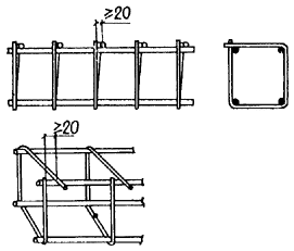 Черт. 98. Примеры пространственных каркасов железобетонных элементов, изготовляемых с применением сварки сварочными клещами