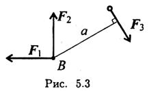 Пример 1. Найти момент присоединенной пары при переносе силы F3 в точку В (рис. 5.3). F 1 = 10кН; F 2 = 15кН; F3 = 18кН; а = 0,2 м.